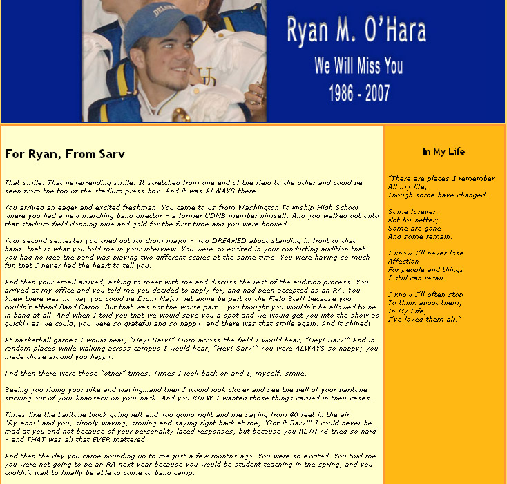 These are tributes to the life and memory of Ryan O'Hara